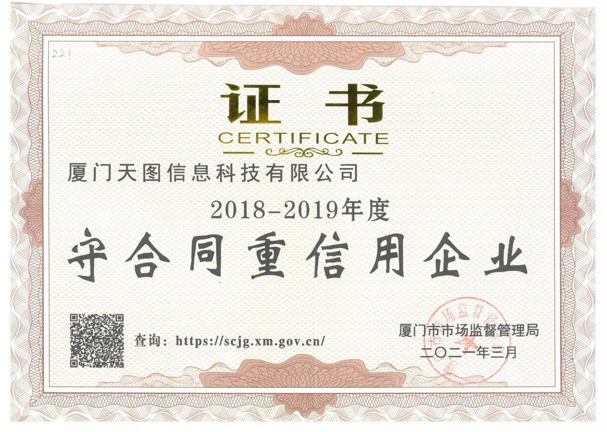 - 2018-2019年(nián)度守合同重信用(yòng)企業(y±₹←è)