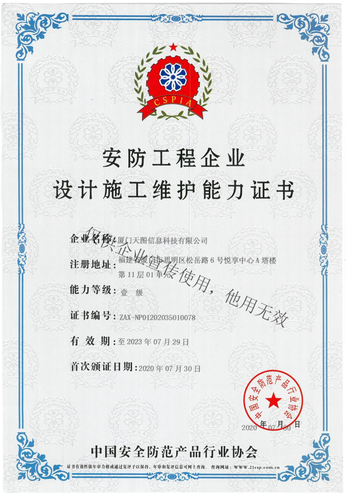 - 安防工(gōng)程企業(yè)設計(jìε₽¶¥)施工(gōng)維護能(néng)力壹級