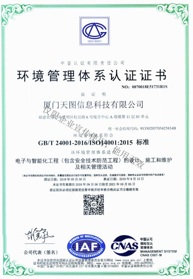 - 環境管理(lǐ)體(tǐ)系認證證書(s₽φ§hū)